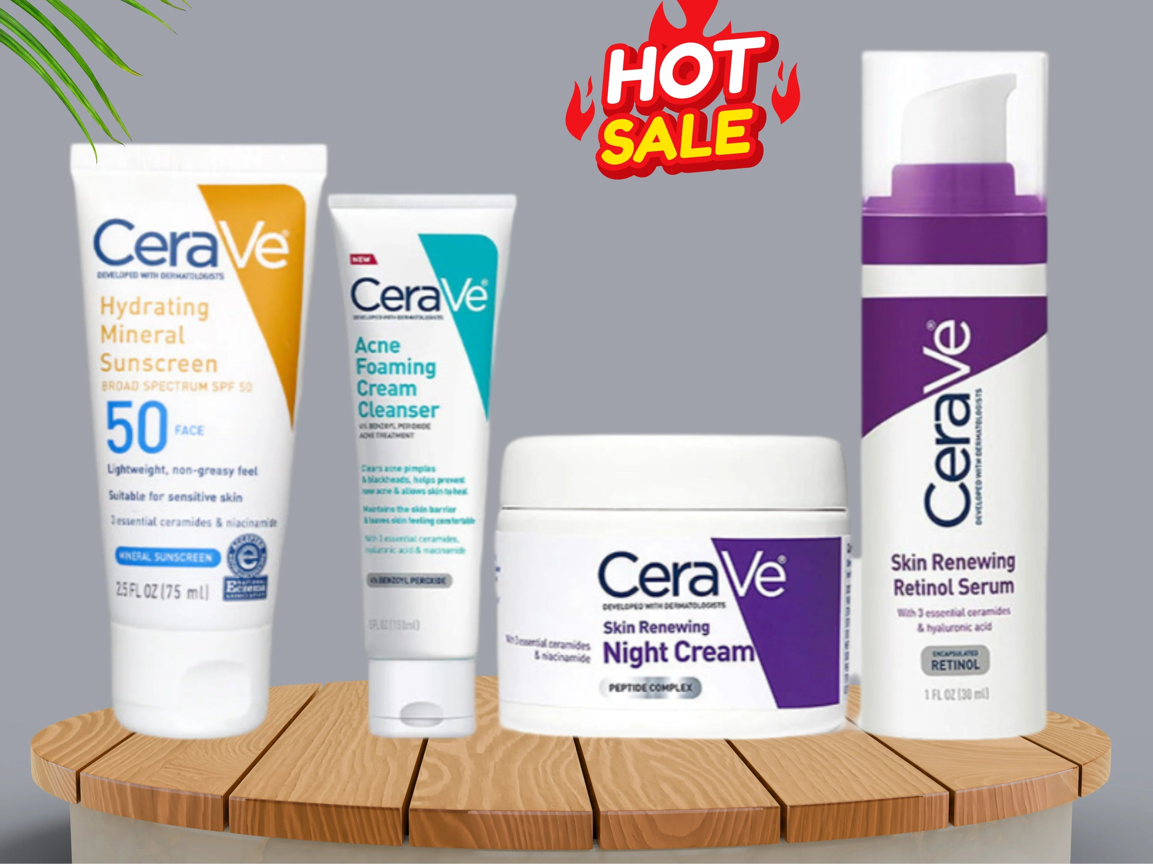 CeraVe 4-in-1 Skincare Kit | Cleanser, Serum, Sunblock & Night Cream | Dermatologist-Approved Routine